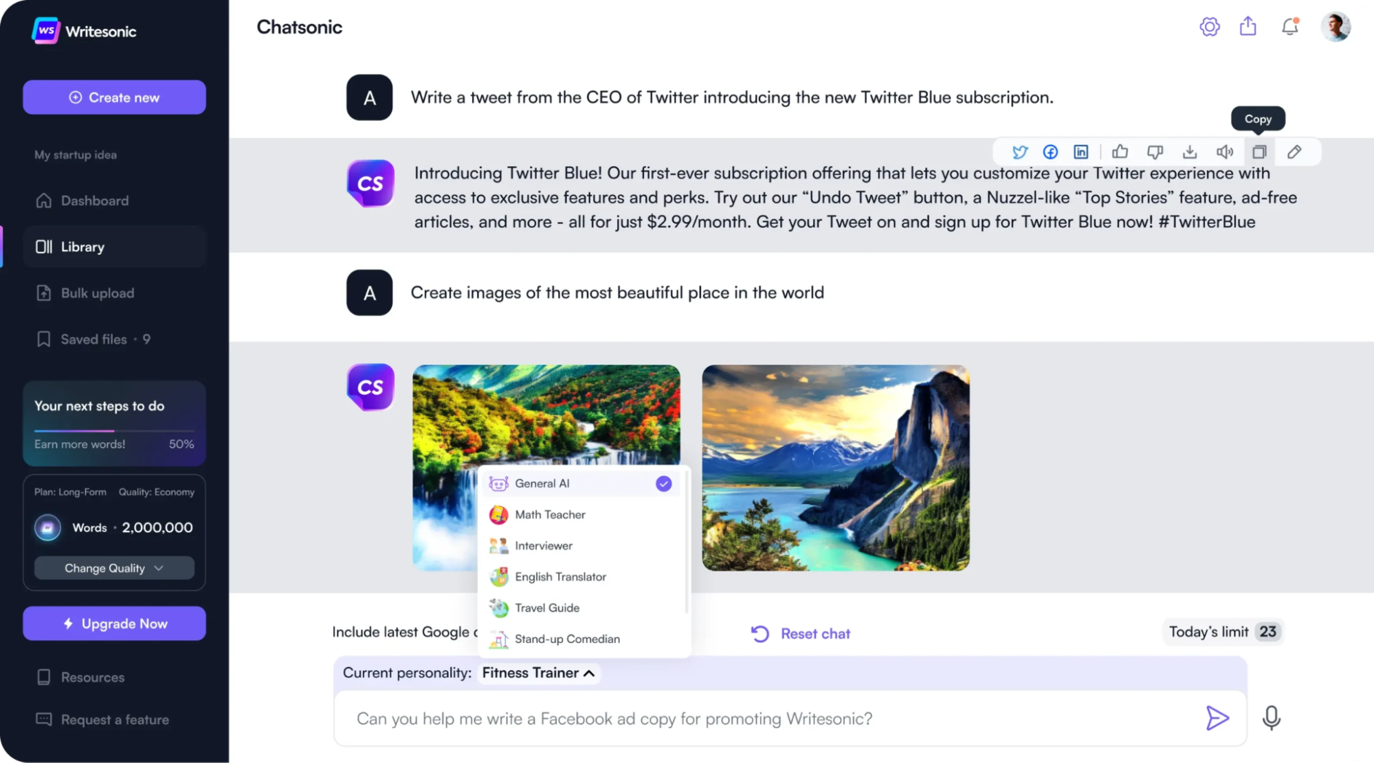 ChatSonic can generate text, create images, and provide up-to-date information by integrating with Google Search. This makes it a versatile tool for tasks, such as drafting emails, writing articles, and answering queries with current data.