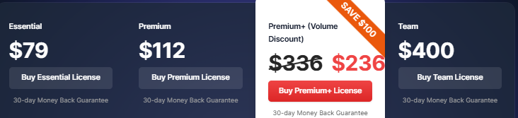 - Team License: Priced at $400, this license can be activated on five Mac devices. It includes all premium features, one year of updates, and priority support.