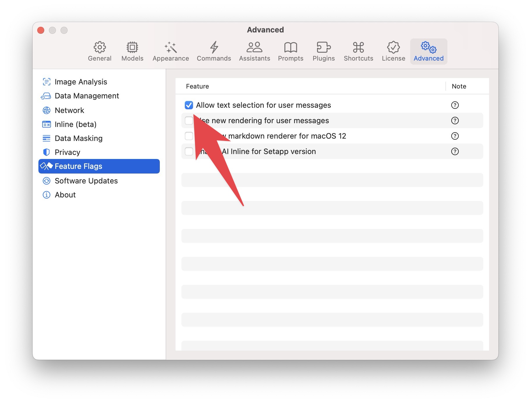 <figure><img src="https://3493584844-files.gitbook.io/~/files/v0/b/gitbook-x-prod.appspot.com/o/spaces%2FynYW2xZqA52spY7XgWis%2Fuploads%2FKj0BLpnc1UbxHpYmXm0w%2FCleanShot%202024-06-10%20at%2018.38.19%402x.jpg?alt=media&#x26;token=70b3cbad-a323-442b-a5ce-2552e208ada3" alt=""><figcaption><p>Enable Text Selection for user prompt</p></figcaption></figure>